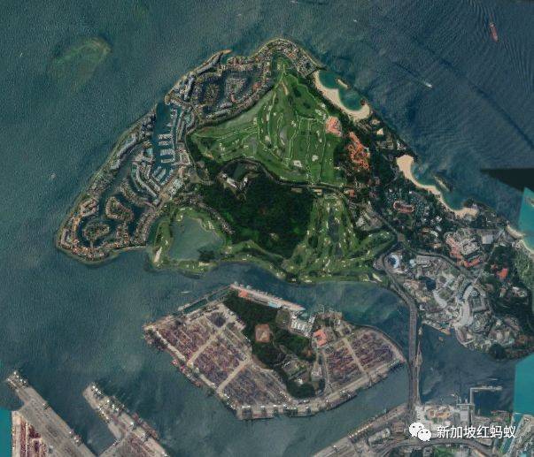 今天的圣淘沙,可见其面积已因填海而增加不少。(谷歌地图截图)
