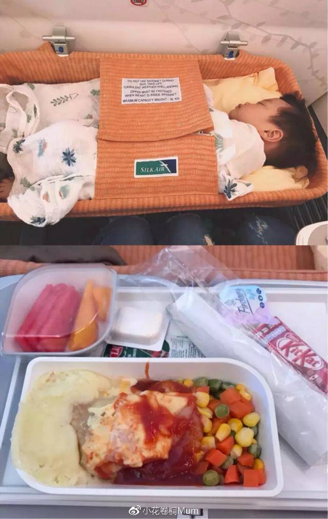 胜安航空(新加坡航空旗下)长途飞行要给宝宝带好足够的果泥、零食、奶、玩具、绘本等消磨时间,起飞降落也可吃点东西减少气压对宝宝耳朵的不适。下图为提前申请的婴儿摇篮及儿童餐。