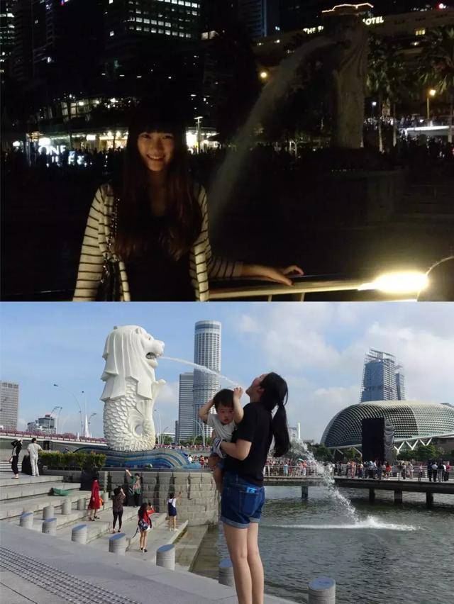 新加坡是我和桐爸相识相恋到相爱的地方。自从结婚后就决定以后要带孩子来到我们相识的地方故地重游。时光匆匆,转眼间几年就过去了,再次踏入这里的心情和往年学生时代有所不同,又激动又怀念。每每经过熟悉之地时,脑海中就浮现出当时的画面犹如电影般美好。感觉就好像前几天才发生的事情,但已时隔千秋。几张对比照感受一下: