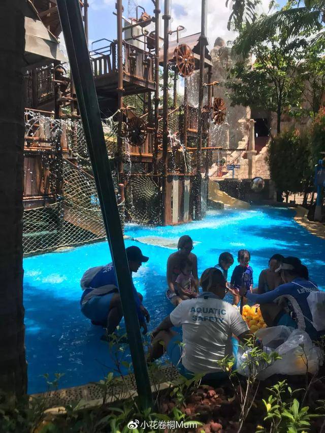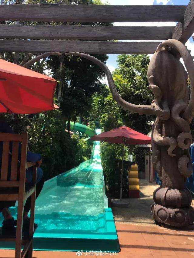 桐非常喜欢玩水,他俩在旁边的冲浪池戏水,我自己旁边连刷滑道,超刺激。