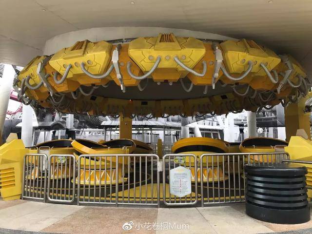 旋转飞盘(无身高限制)与迪士尼旋转蜜蜂罐或咖啡杯类似,排队的人很少。