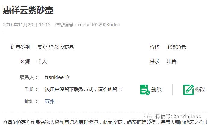 在网络上,他制作的一把紫砂壶,在3年前就已经开价近20000人民币(约3900新币)!