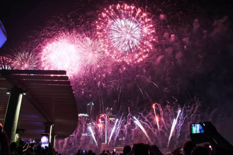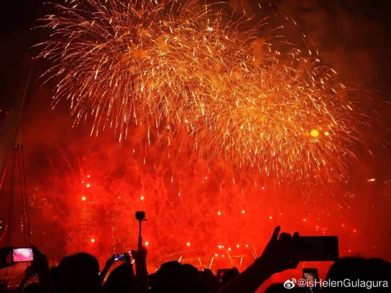 整个烟花汇演长达5分钟,面对这么美的烟花,网友们也是拍到停不下来!这位网友拍视频记录了烟花全过程,简直太棒了~