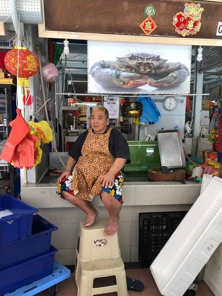 在宏茂桥3道大牌314湿巴刹开档卖鱼虾螃蟹等海鲜。