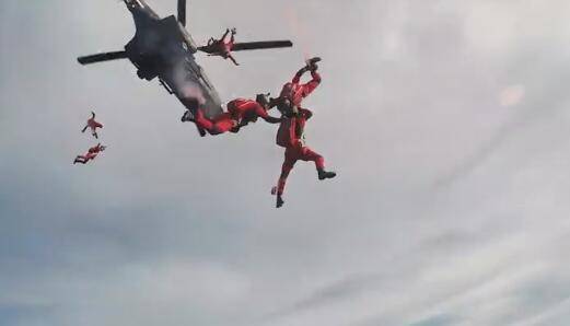跳伞员在一万英尺的高空跳出直升机后,其他队员在5000英尺的上空时张开降落伞,而领队则在约3500英尺的上空才打开降落伞。因为离地面近,最先感受到风向如何影响降落,才能找寻最适合路线。