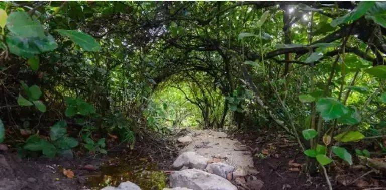一条条的树枝拱起,给人一种童话里门的感觉,在这样的岩石小径上行走,你的脚上会被撒上太阳的亮光,这也是拍instagram的一个好地方~