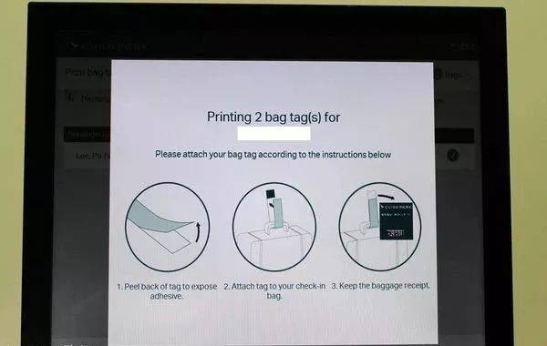 依照屏幕教学黏贴好行李贴纸