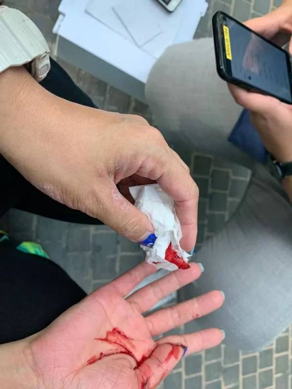 被送到急救室后,星耀樟宜的医护人员为她进行专业包扎,这才止住流血........