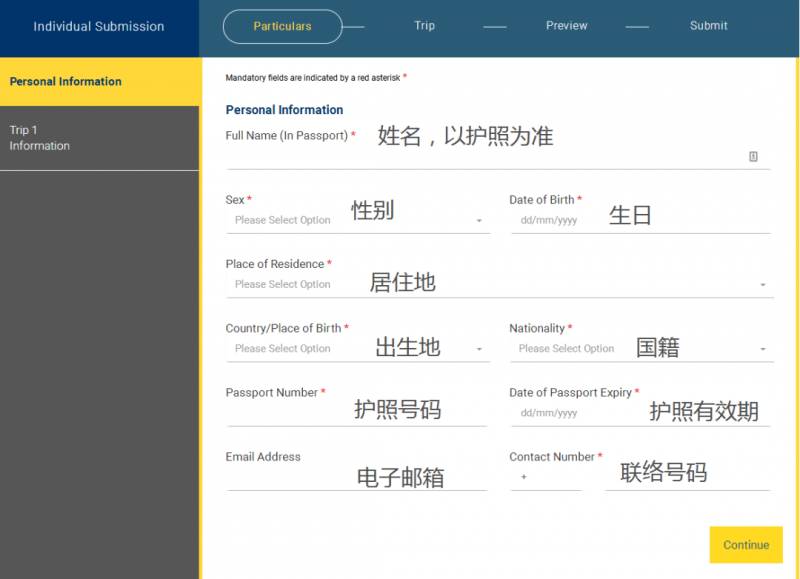填写个人信息及旅行信息,很多信息都可以直接下单菜单进行选择,非常方便。然后预览已经填写的信息,确认无误后递交,如果在线填写入境卡成功,就会收到电子版入境卡。在线填写的信息,递交成功后也可以修改。最后,也会收到来自ICA的确认邮件。