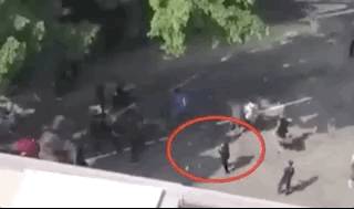 警察传媒联络队(FMLC)队员中箭,图自香港警察脸书