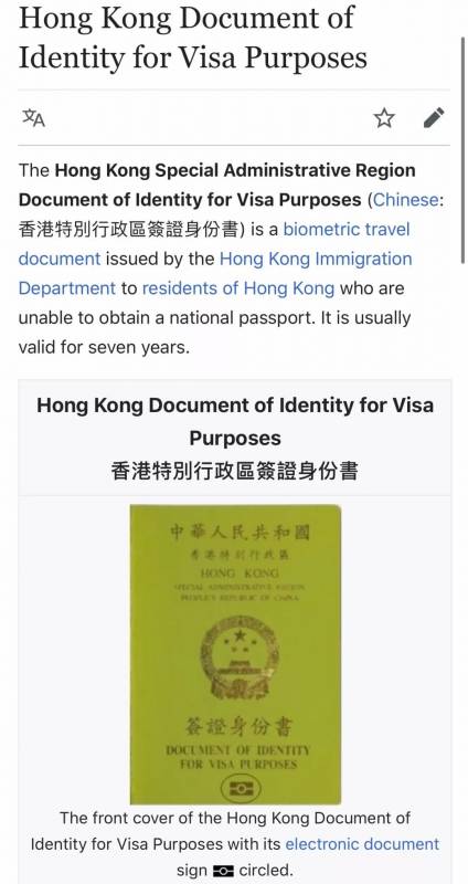 Document of Identity (DOI) 不是香港护照,通常发给港人的家属,在港居住7年才能换护照。因此DOI的本来就要办签证,不是什么新闻。