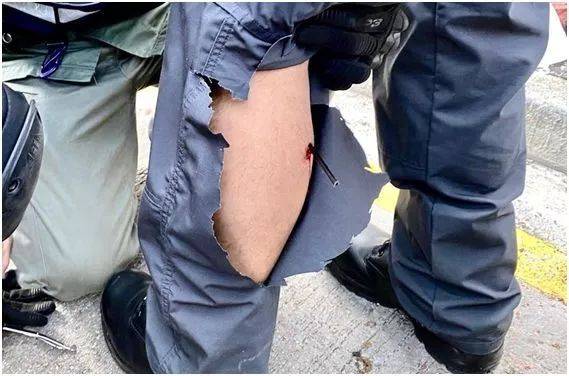 警察传媒联络队一队员被箭射中小腿,图自香港警察脸书