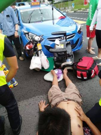 这起车祸发生在前午3时50分左右,地点是蔡厝港大道和蔡厝港1道的交界处,车祸涉及一辆德士和一名助行车使用者。