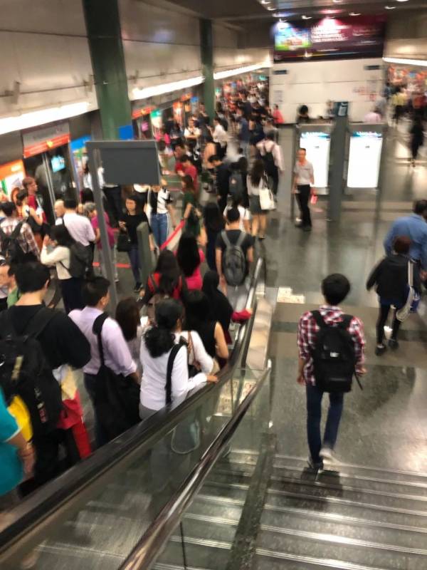 由于新加坡是左侧通行,所以当你站在左侧的自动扶梯上,你会发现右半边是留给那些着急赶路的人。