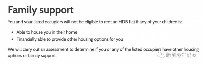 此外,建屋发展局也规定,想要参与租赁组屋计划的人们膝下有孩子能为他们提供其他住宿选择的话,则极有可能无法符合条件。