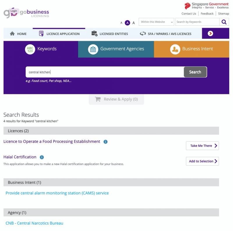 如果您打算在食品和饮料领域开展业务,则GoBusiness Licensing已启动了一项新的Guided Journey功能,以指导您识别和申请所需的许可证。向导式旅程功能仅适用于CorpPass用户,并将在不久的将来在其他行业中推出。