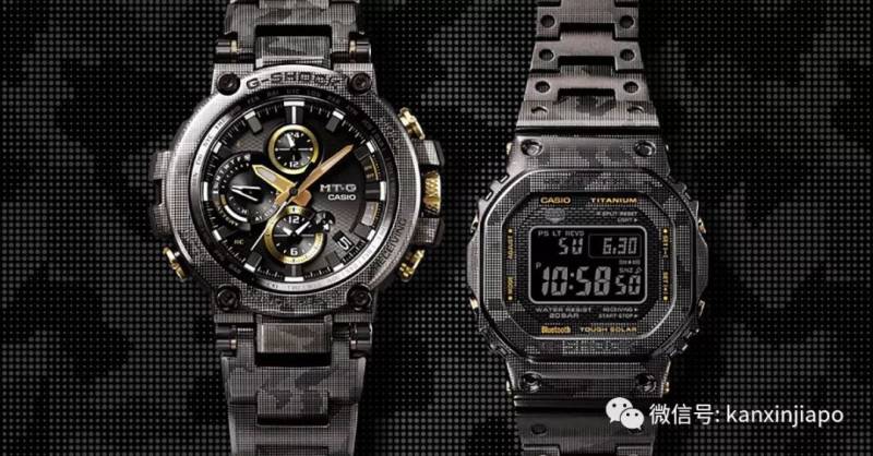 新款具有全金属外壳和激光迷彩印花的表带的G-Shock,帅男酷女一定买!