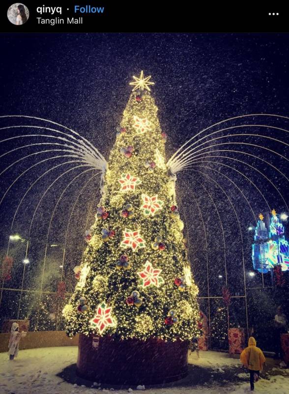 当每个孩子争相和彩灯、圣诞树合影