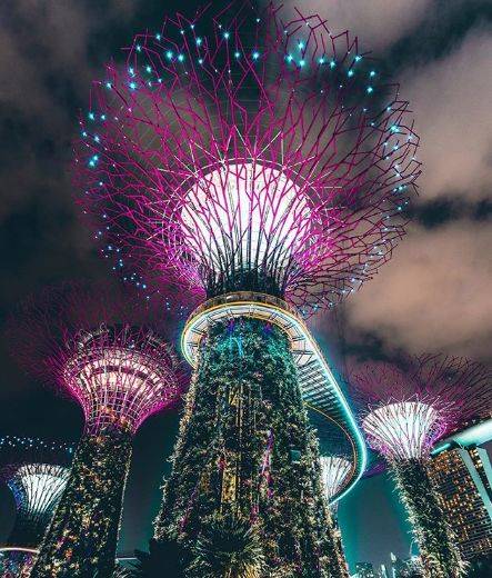 没在晚上来过滨海湾花园,你肯定不知道一个花园的夜景可以美得如梦似幻,如此的不真实!