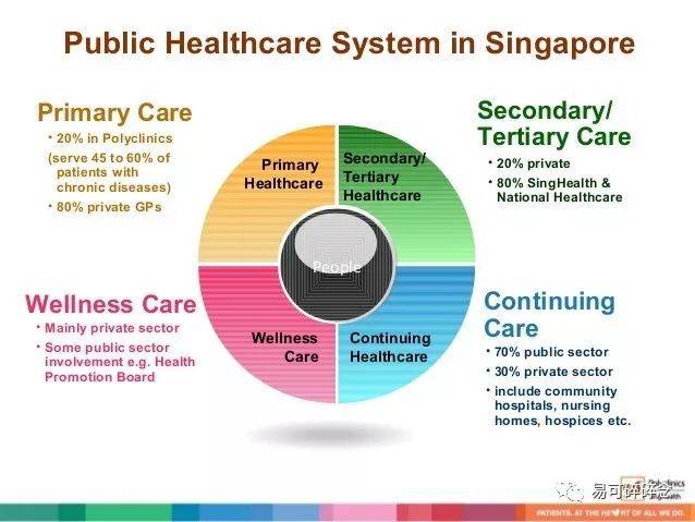 新加坡实施的是分级诊疗制度,整个体系可以根据下图分为四个部分: