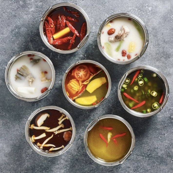 “我们的独享锅可以一锅多味,人多的话,选择一桌多锅多味,可以一次全体验到所有锅底口味哟~”