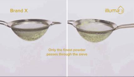 奶粉筛分测试,右侧精细的启赋奶粉更容易通过筛子。