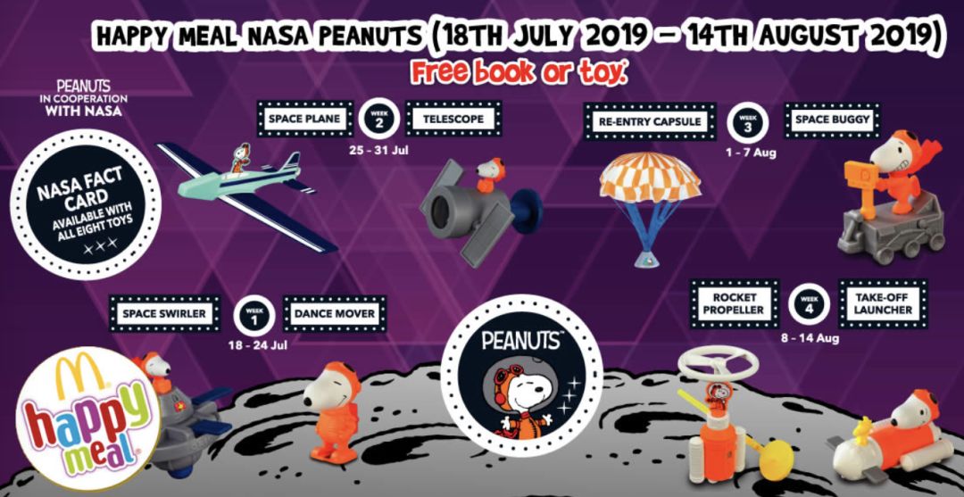 即日起购买麦当劳儿童套餐,即可获得NASA吉祥物——宇航员Snoopy玩具!