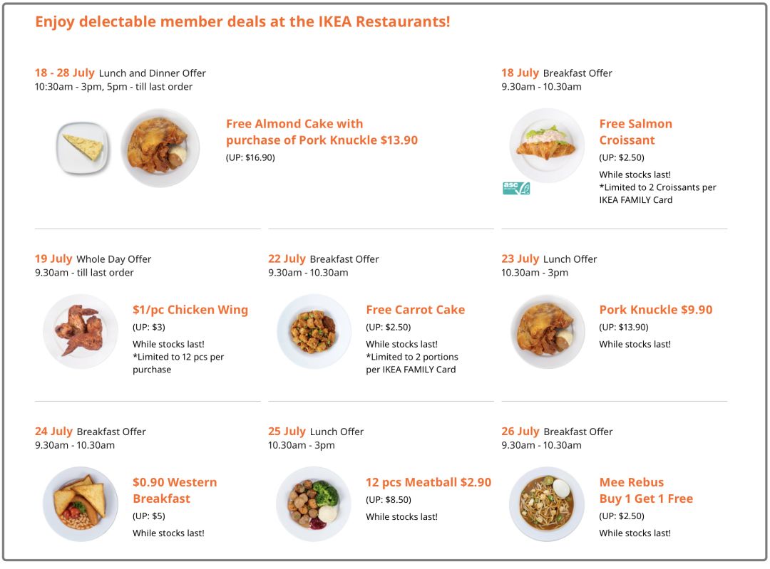 免费报名成为宜家会员,即可享有宜家家庭日特别优惠!7月25日,特色肉丸12粒只要$2.90(原价$8.50),欲了解更多优惠,可查询网站:https://www.ikea.com/sg/en/stores/restaurant/