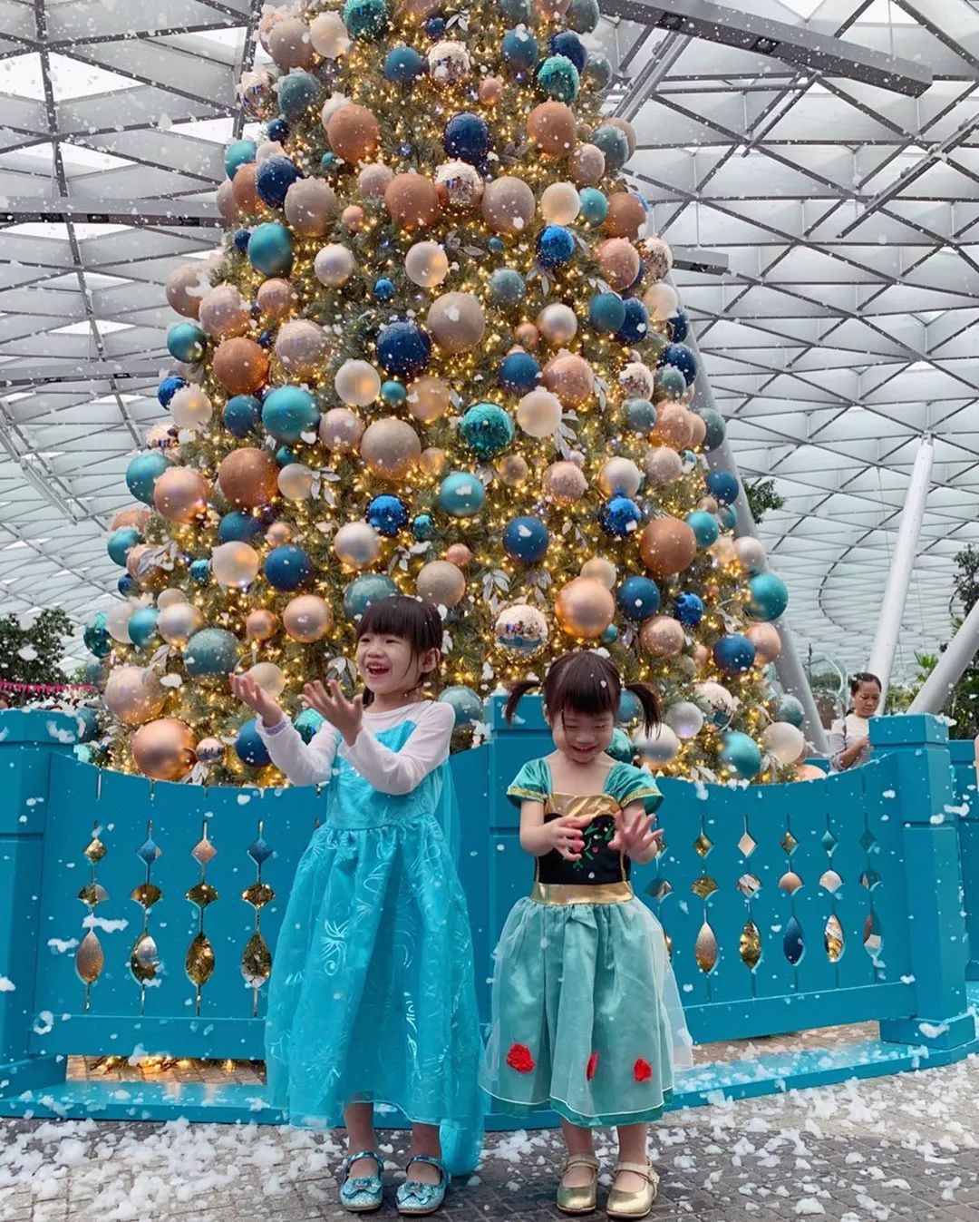星耀樟宜很贴心的布置了飘雪的景致