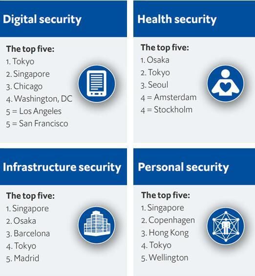 依靠低犯罪率、完善的灾害防护措施和低电脑感染病毒率等,东京第三次获得榜首,另一座日本城市大阪排在第三位。