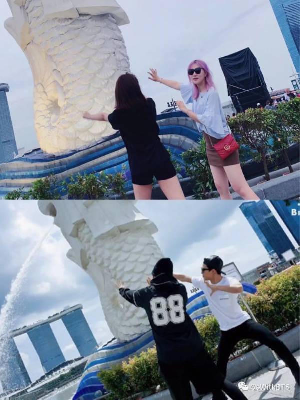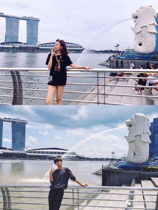 首先是1号同款地鱼尾狮公园,地铁市政厅站(City Hall)下车。新加坡的一大地标,所以人一直很多,除非特别特别早来,不过防弹的照片里人也挺多的~