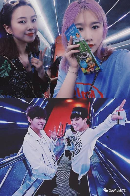 检票之后的电梯,泰泰和旻旻合照拍摄地