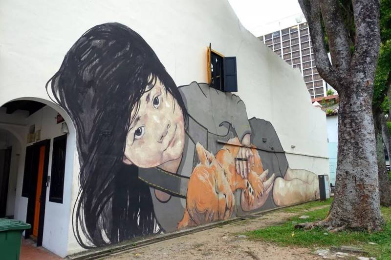 位于维多利亚街的横巷惹兰古坡(Jalan Kubor)里,篇幅极大的《女孩与幼狮》视觉效果让人惊艳无比。
