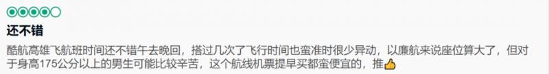 对酷航乘坐体验感觉满意的一点
