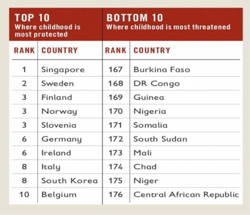 根据调查结果显示,在提供医疗保障、教育、营养供给和儿童权益保护四个方面,新加坡在176个国家中脱颖而出,打败斯洛文尼亚(去年与新加坡同登榜首的国家)、瑞典、芬兰等多个人民幸福指标较高的欧洲国家,在满分1000分中,获得989分。