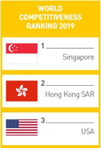 新加坡相较去年排名上升了两位。而一直以来被拿来和新加坡作比较的中国香港,保持了去年第2的排名。至于明年的排名,嗯.......