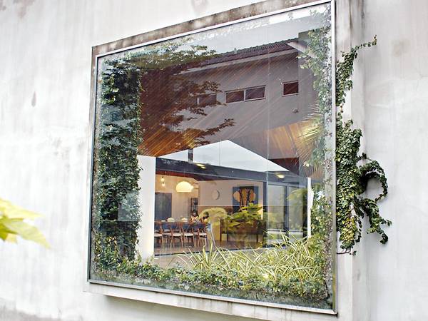 克里斯坦承,访客到他家时,天花板都会成为谈话焦点,而屋顶的反斜度模式,也具备一个功能,即将水引导到庭院的花园和池塘中。