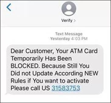 据悉,这种诈骗的具体方式是:向用户的手机发送一条简讯,声称他们的银行卡已被停用,或者银行账号已被冻结,需要拨打指定号码以重新激活银行卡或银行账号。