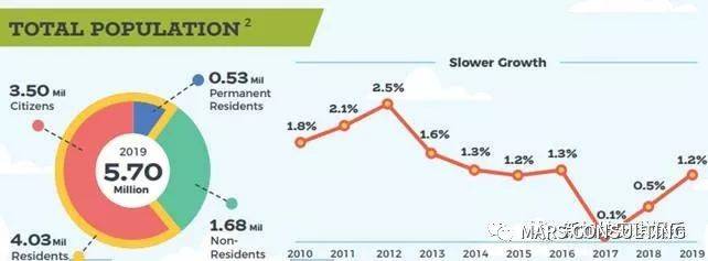 其中,新加坡公民人数为350万,年比增长为0.8%;