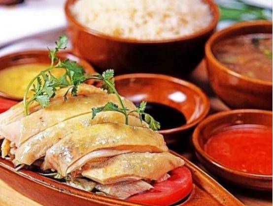 接下来是海南鸡饭,著可算得上是新加坡的国菜,制作方法非常的讲究,将整只鸡煮至肉质最鲜嫩的时候,加上各种调料,最后美美的摆盘,和它相配的米饭也必须得用鸡汤和鸡油一起蒸熟,这样蒸出的米饭才能极其的爽口香滑,好吃到爆。