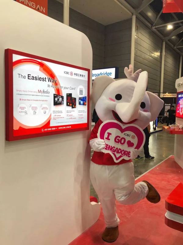 工行新加坡在今年展位上引入了“工小智”机器人。“工小智”可以和参展来宾中英双语交流、查看当地天气、查询外汇价格,并讲解工银集团创新理念,深受嘉宾喜爱。展会期间,“工小智”重点推荐扫码在线申请新加坡工行信用卡,方便快捷。此外,小智的砸金蛋抽奖小游戏与业务问答、移动支付购物和成功申请信用卡有机结合,丰富了展台上的应用场景,成为了重要连接点。