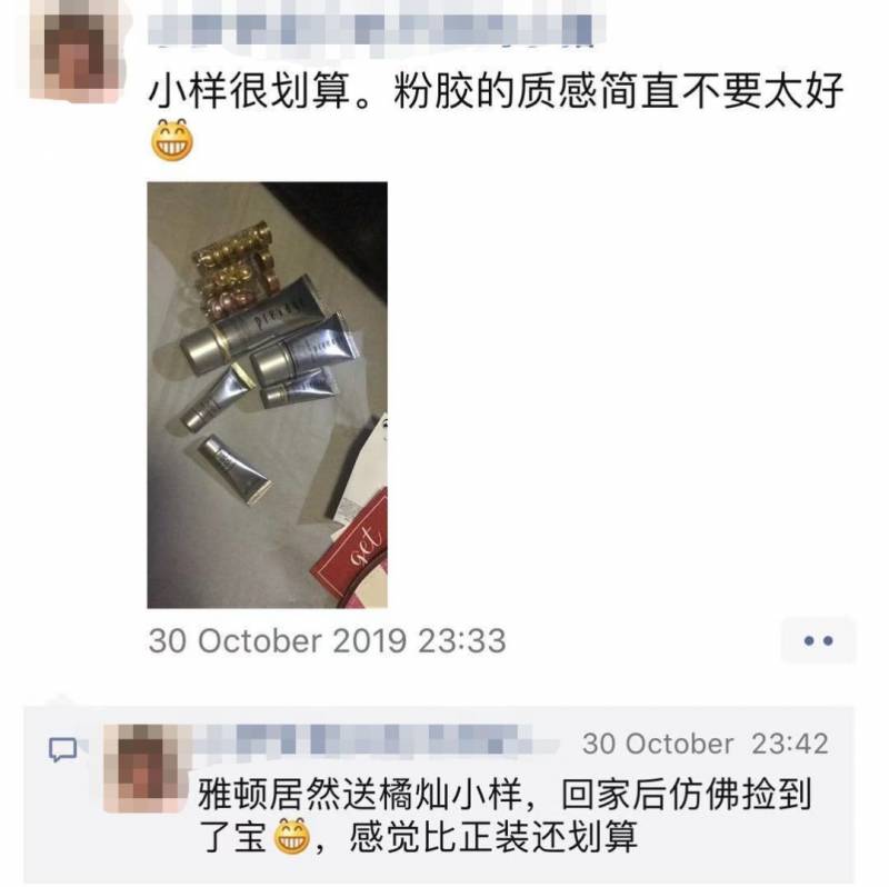 在雅顿之前的折扣活动中,死忠粉们得到高端线的橘灿试用装,开心得不得了~