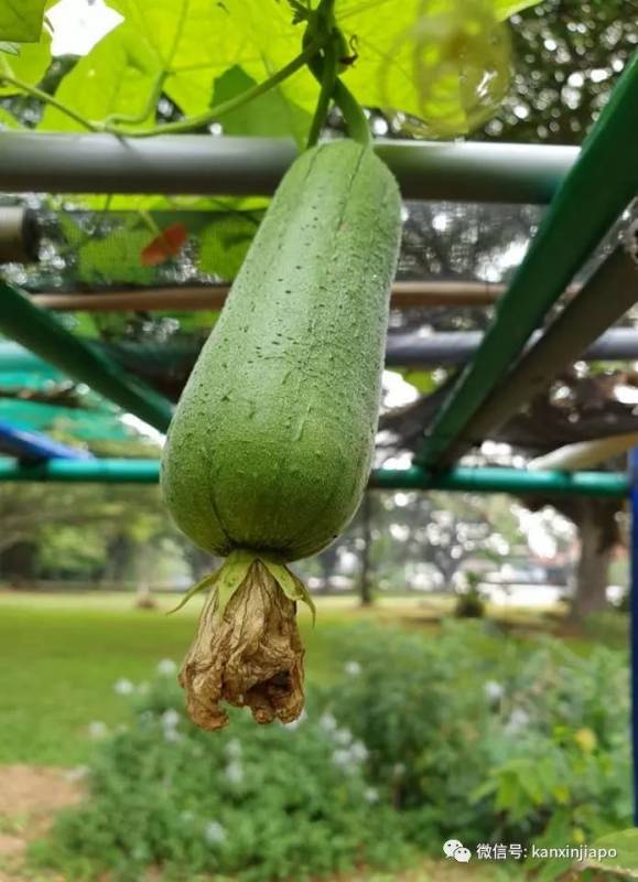 公园里还设有果架,藤蔓缠绕在架子上,绿油油的青瓜染上几分可爱的意味。