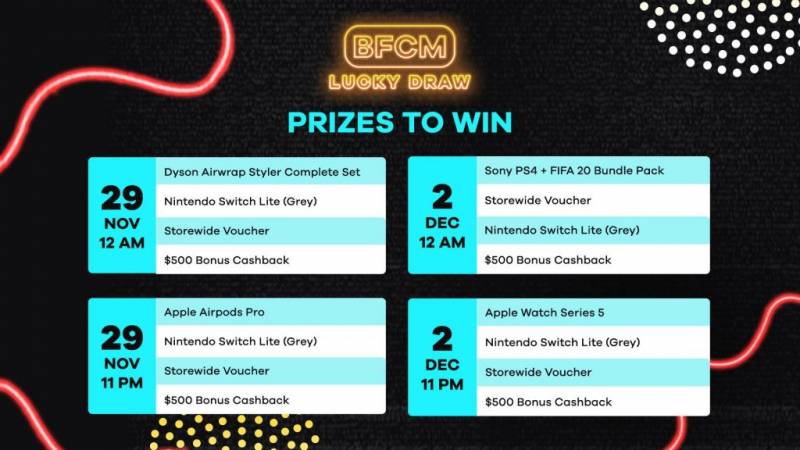 有机会赢取戴森套装、任天堂游戏机、500新币Cashback等超级大奖!
