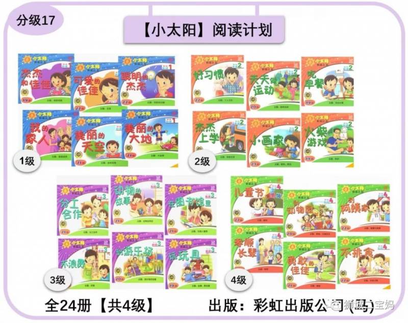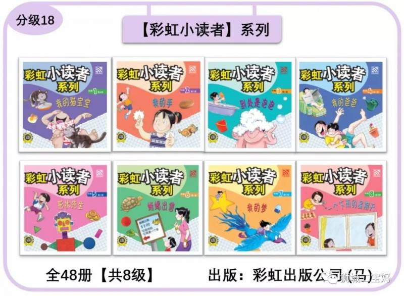 宝妈点评:马来西亚彩虹出品,适合3岁及以上的孩子。全套4级,每级包括8册读本和陪读指南,识字卡片可单独购买。