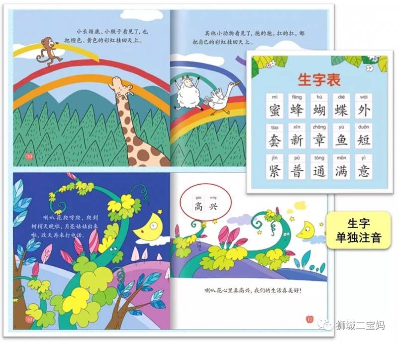 宝妈点评:1). 故事浅显易懂,温情满满,极具启发和教育意义;2). 正文没有拼音,生字单独标注,每册分设生字表。