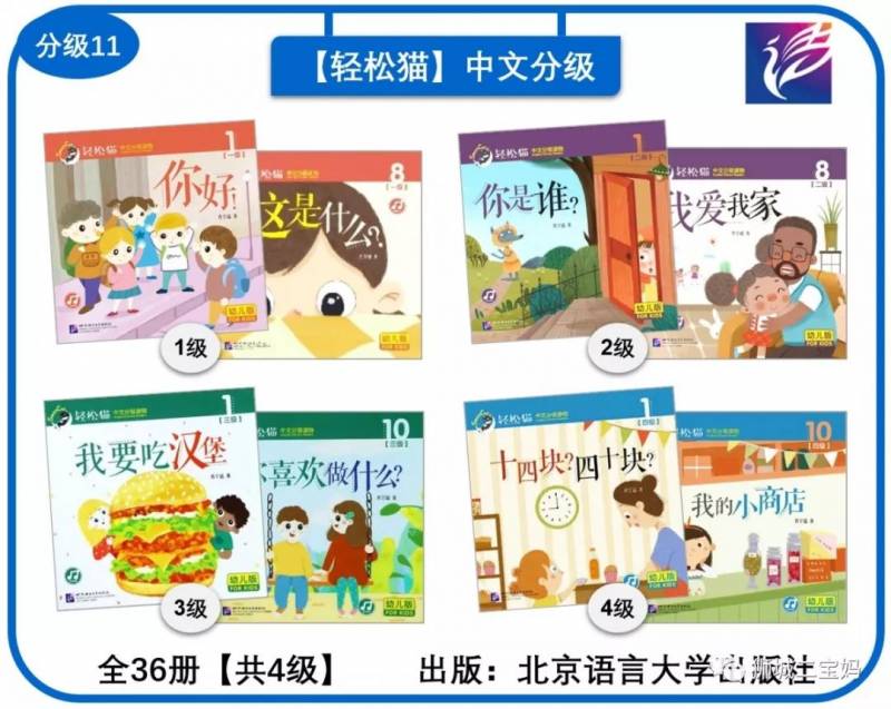 北语出品,全套4级,共36册,每册约10-12个句子,包含两个类似的相关小故事。用幼儿常用的,基础的词汇和句式,进行创作,同时确保故事有趣,有韵律。