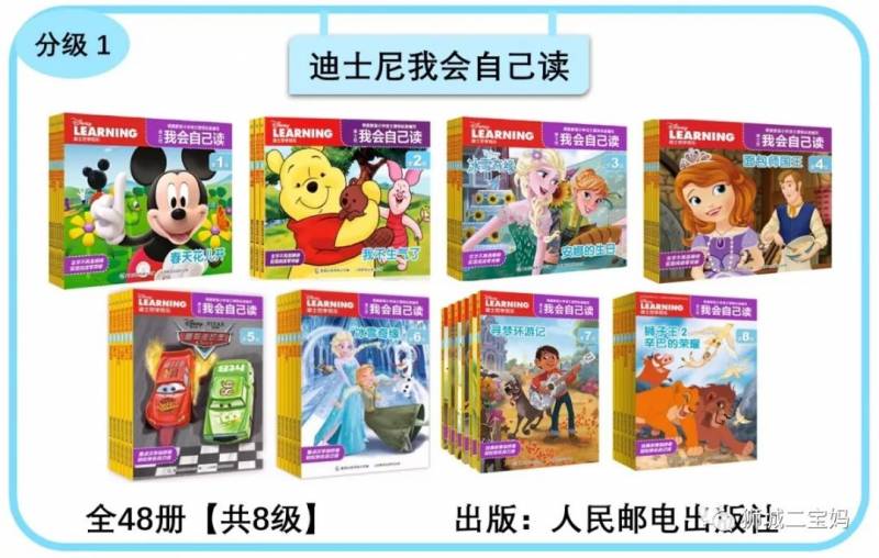 宝妈点评:1). 迪士尼授权的经典卡通形象,插图美轮美奂;2). 字词重复率极高,生僻词有图解;3). 各级难度上升幅度小,保持孩子的信心和阅读兴趣。