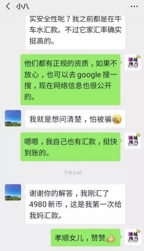 小八主动联系了我们,她第一次听说到互联网的汇款中心有些不信任,觉得没有线下门店,始终是一个担忧,毕竟互联网看不见摸不着,有时候真的不敢相信线上转账的方式是不是真的会把钱打到自己的账户里。