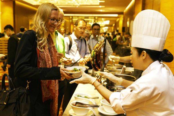 施耐德与会代表们最先品尝到滨海湾金沙“善待地球”菜单上的特制可持续菜肴。